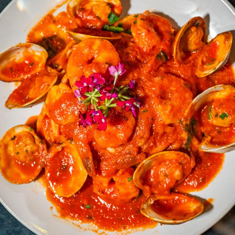 Whole Maine lobster, shrimp, scallops, calamari, clams, and mussels. Sautéed in a white wine marinara sauce with fresh garlic and basil. Served over linguini pasta